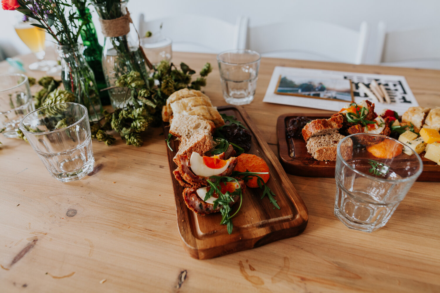 When it comes to styling the room, they kept it simple and gorgeous. Using wildflowers and incorporating hops to tie in with their awesome wedding venue. They had to make sure to leave plenty of room for their guests to sit and chat, drink beer and eat amazing food, especially pie from Pie Eyed!